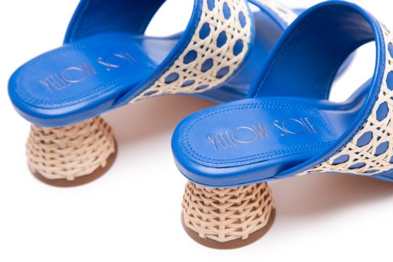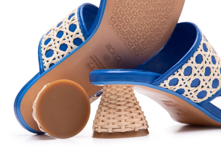 – O salto de 5.5 cm é forrado à mão com palha natural, seguindo o mesmo processo da cestaria. É um trabalho extremamente complexo e requer habilidade artesanal específica.