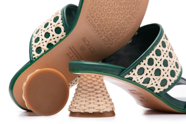 – O salto de 5.5 cm é forrado à mão com palha natural, seguindo o mesmo processo da cestaria. É um trabalho extremamente complexo e requer habilidade artesanal específica.