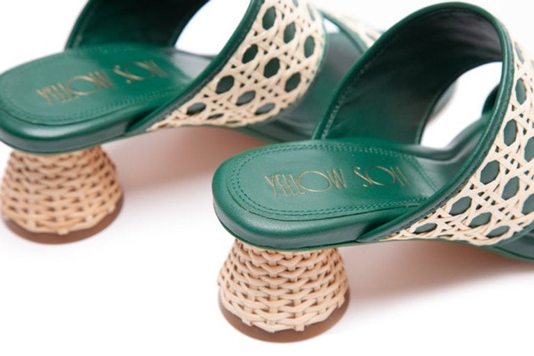 – O salto de 5.5 cm é forrado à mão com palha natural, seguindo o mesmo processo da cestaria. É um trabalho extremamente complexo e requer habilidade artesanal específica.